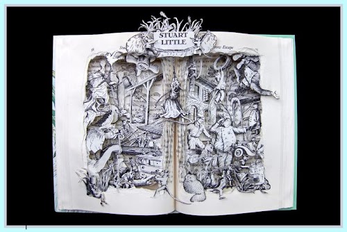 The biggest challenge is once I start cutting there is no going back. That and not having a road map. When sculpting a book I never know where I’m going. I don’t plan them out. I let the illustrations dictate where they are placed. It is always a wonderful surprise once the sculpture is complete.
